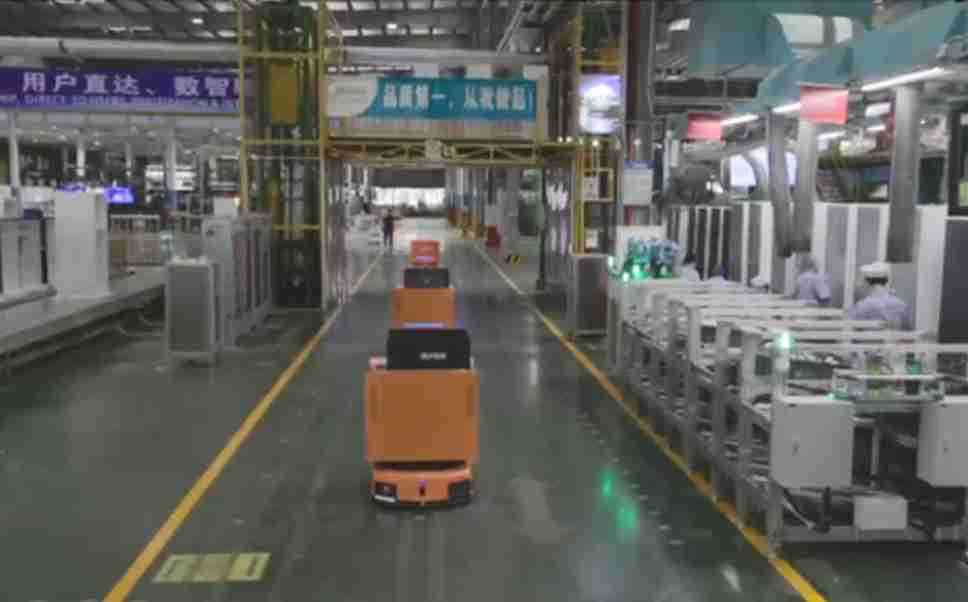 为车载冰箱物流配送打造的智能解决方案,,,,包含产中物流通过潜伏举升AMR搬运至线边,,,,产后成品物流智能仓储,,,,流程包含产中物流智能齐套入库,,,线边安灯叫料AMR智能配送至线边,,,成品入库、、、、出库,,,,通过无人堆高车机器人,,,智能仓储管理替代人工作业管理,,实现更高存储、、、更高效率、、更具柔性化的解决方案。。。